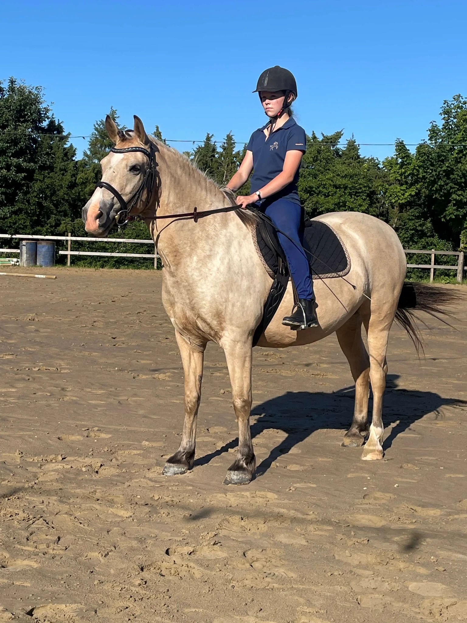 Hän on ollut käytössä pienessä ratsastuskoulussa, käynyt paljon maastossa ja osallistunut yhteen harjoituskilpailuun.