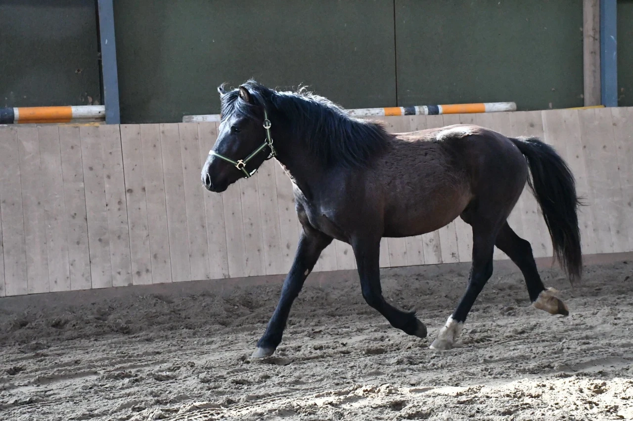 Käib käekõrval. Transporditud. Sõbralik, elab 24/7 õues. Elab koos teiste ruunade ja täkkudega samas karjas, oskab olla ka boksis.