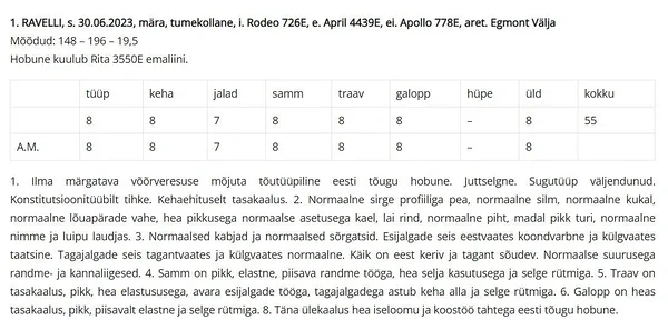 Suuremat kasvu hea liikumisega eesti tõugu mära. Iseloomult rahulik ja lihtne õpetada.