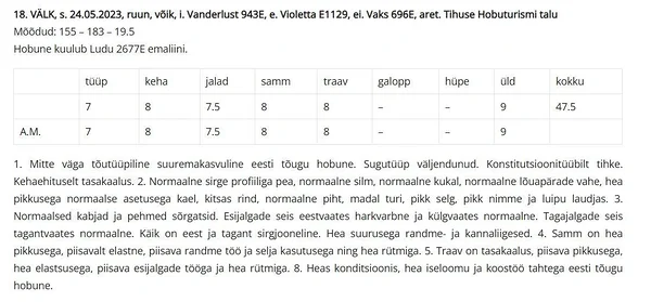 Iseloomult väga sotsiaalne, tervis korras. Elanud karjas, saab läbi nii märade kui ruunadega. Transporditud, värgitud, saanud regulaarselt siseparasiitide tõrje. Tulevikus sobilik hobune lastele, harrastajatele ning ratsakooli.