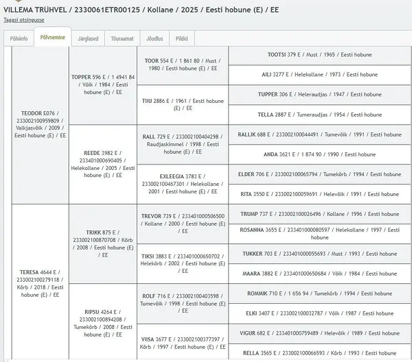 VILLEMA TRÜHVEL, eesti tõugu hobune, täkk