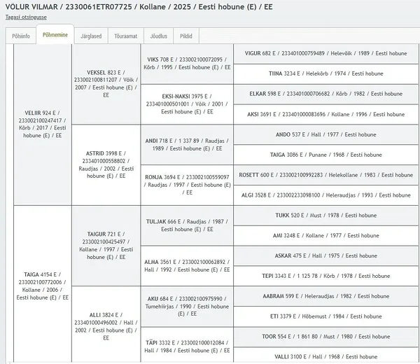 VÕLUR VILMAR, eesti tõugu hobune, täkk
