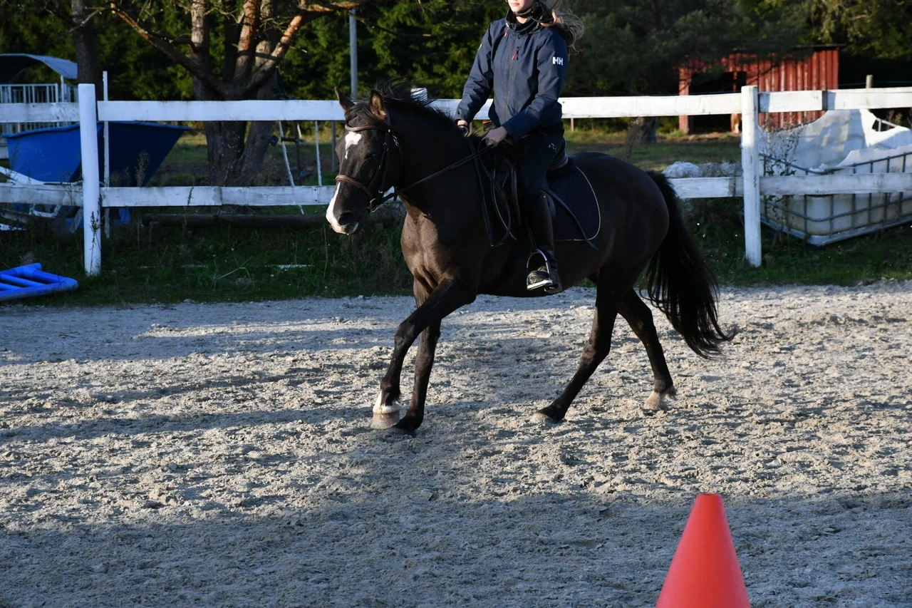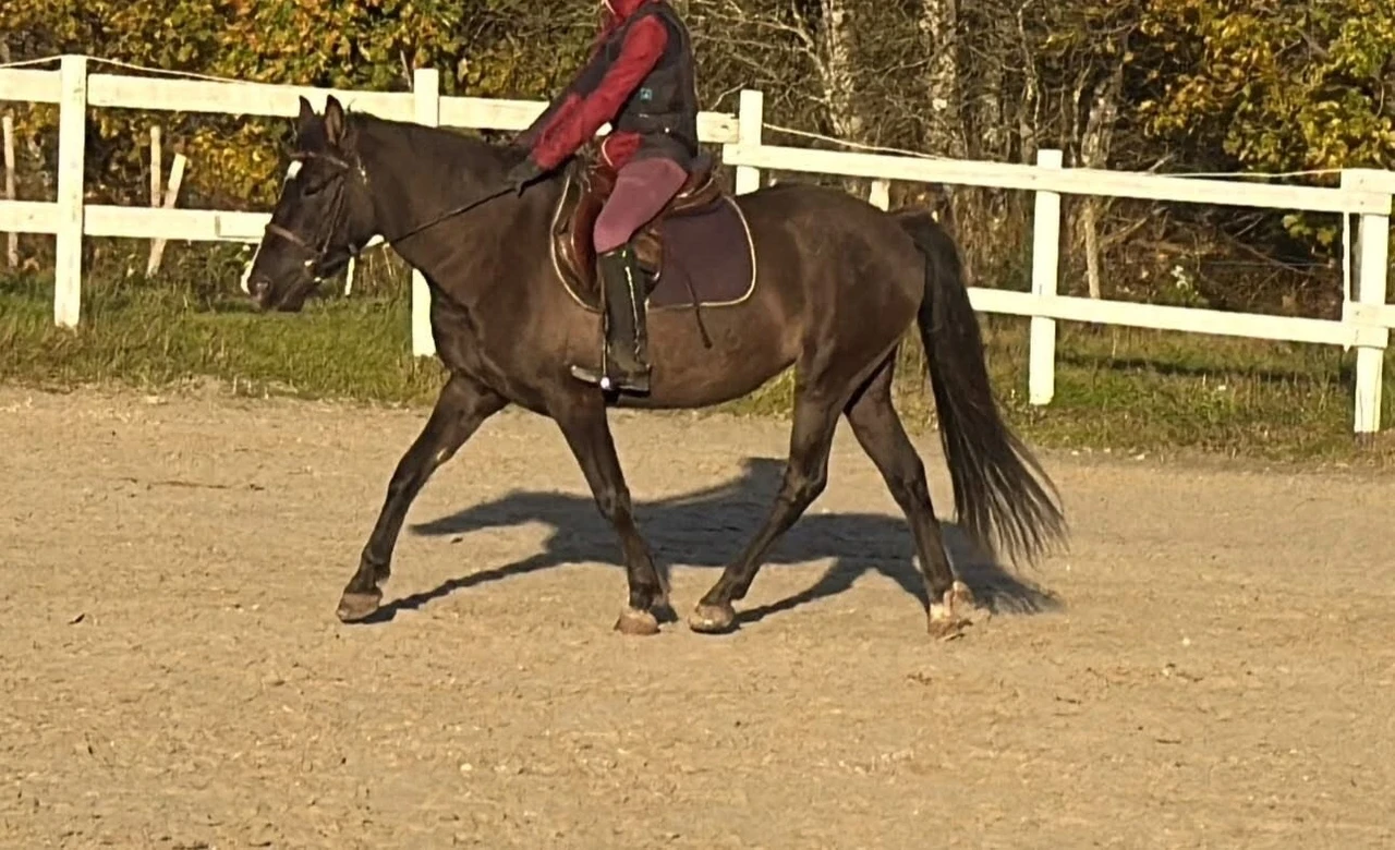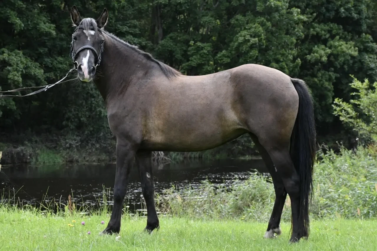 Safe and reliable — suitable for also beginners to ride. Easy to handle and transport, very friendly and social in the herd. Currently jumping 70 cm under saddle and has competed in small competitions 60cm.
